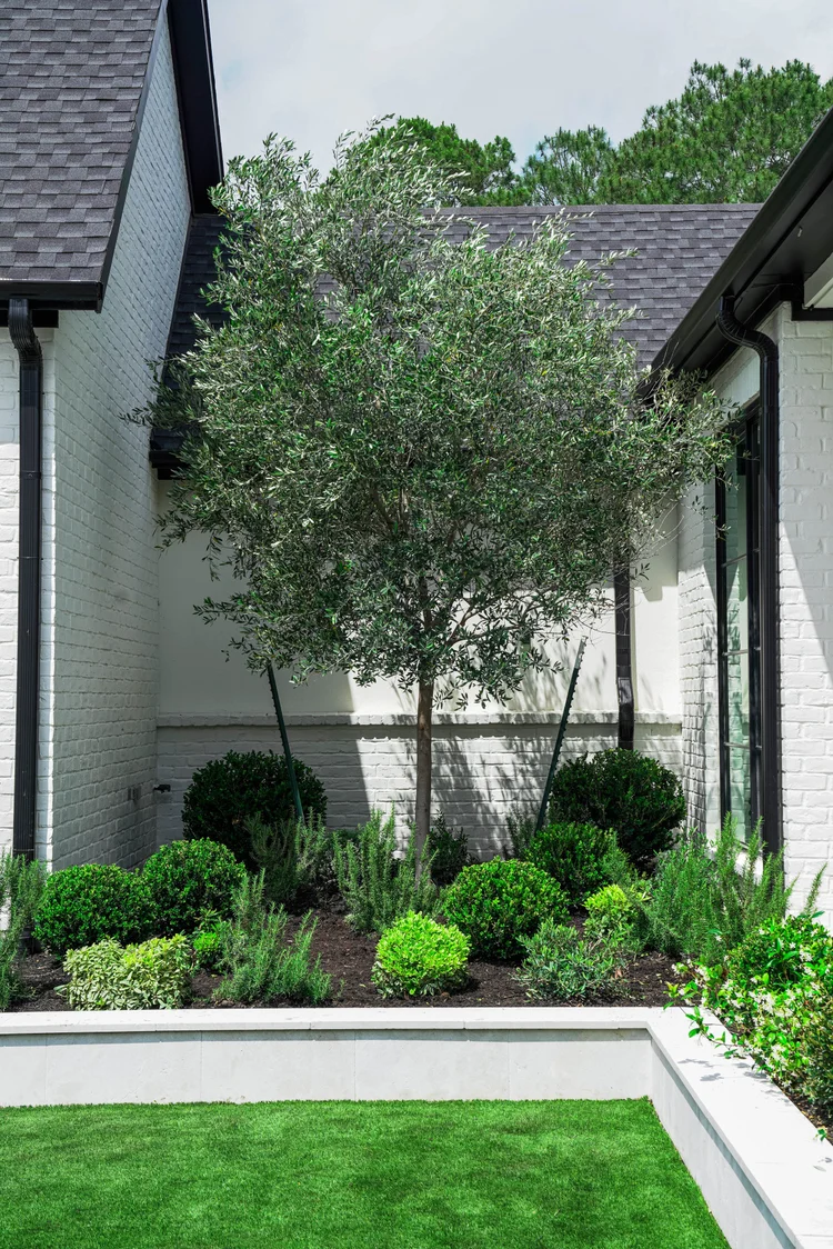One of the standout features of this property is the set of four mature olive trees, which serve as focal points within the design. Because these trees are particularly sensitive to cold weather, we developed custom winterization canopies specifically for this site. These canopies are installed seasonally and include integrated heaters to maintain a stable temperature around the trees during freezing conditions. This specialized system allows the olive trees to thrive year after year, despite the region’s occasional winter freezes, and demonstrates the level of customization and problem-solving required to maintain this landscape at a high level.
