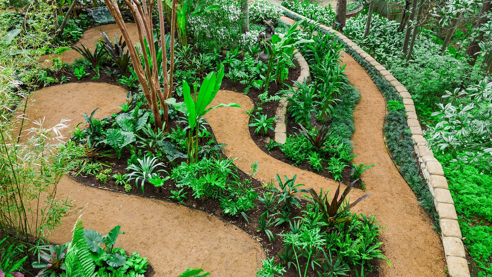 The second challenge was working with delicate tropical plants in Houston’s unpredictable climate. Several plant species were vulnerable to cold weather, and the garden later experienced multiple freezes that damaged flowering plants like heliconia and birds of paradise. To address this, the team relocated some plants indoors temporarily and planned for sustainable reuse of materials. Hardy species such as sable miners and southern wood ferns were intentionally selected to allow relocation to other gardens once the installation concluded.
